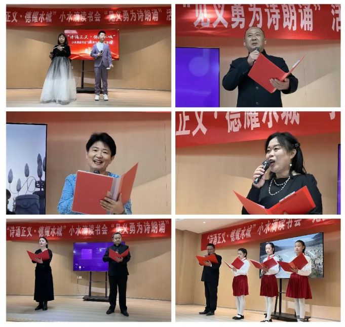 本次诗朗诵会以“诗诵正义• 德耀水城”为主题,紧扣聊城见义勇为群体的感人事迹,通过原创诗歌朗诵这一形式,打造了一场兼具思想深度与艺术感染力的精神盛宴。朗诵者们以饱满的情感、铿锵的语调,先后呈现了《见义勇为先模礼赞》《英雄的家园》《一跃》等多部原创作品。这些作品取材于聊城近几年涌现的见义勇为真实案例,既有谭学力勇斗持刀歹徒的凛然抉择,也有杨元新、贺安友、贺增涛徒手爬楼高空托举坠窗儿童的侠义仁心,更有徐克、何克强等人救起落水儿童的凡人善举,字里行间饱含着对英雄的敬仰,对正义的赞颂。