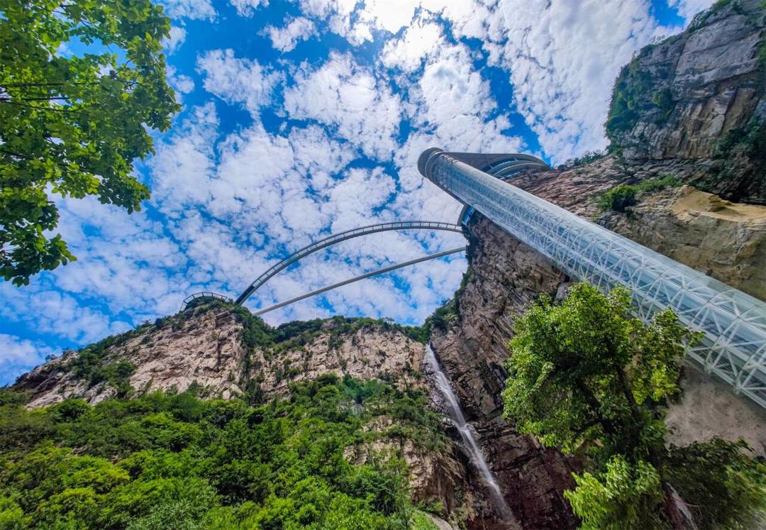 2017年,世界首例无背索斜拉弧形玻璃桥与百米观光电梯横空出世,这不仅是潭溪山的成名作,更是景区从自然观光向多元体验转变的初步探索。秉承生态优先的开发建设原则,潭溪山陆续打造了空中玻璃漂流、星洞传说、悬崖秋千、悬崖狂呼、齐长城清川上野奢探险度假营等一系列各具特色的体验项目与度假酒店,打破了游客对传统山岳景区的想象边界,让游客体验到了别样的旅游乐趣。